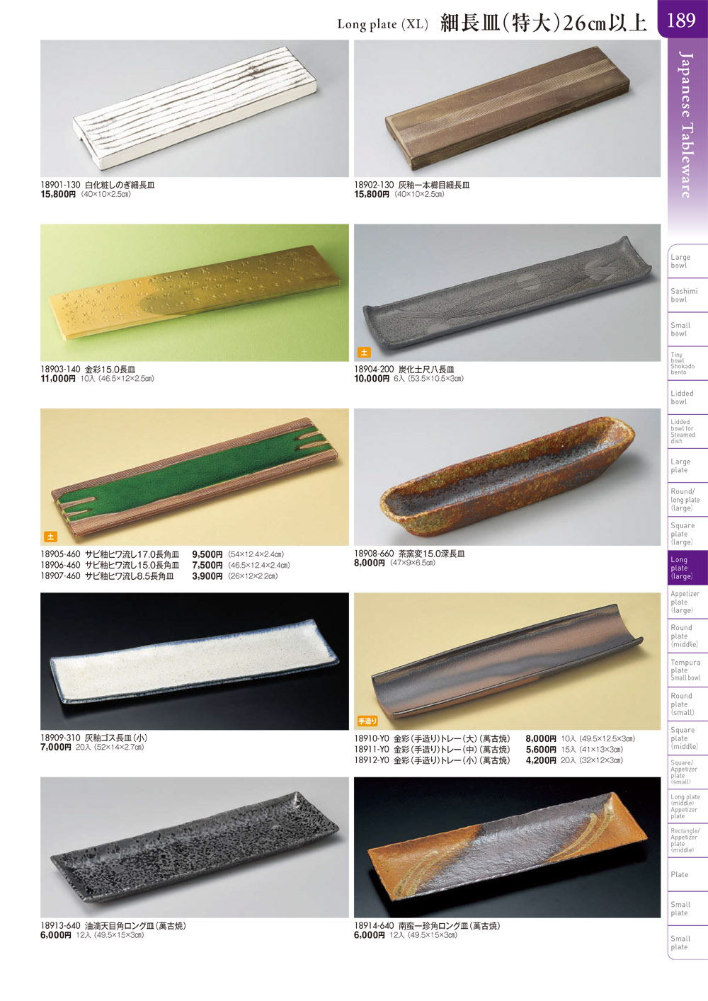 盛皿・丸皿・長角皿・角皿・細長皿・変型皿(特大・大・中)