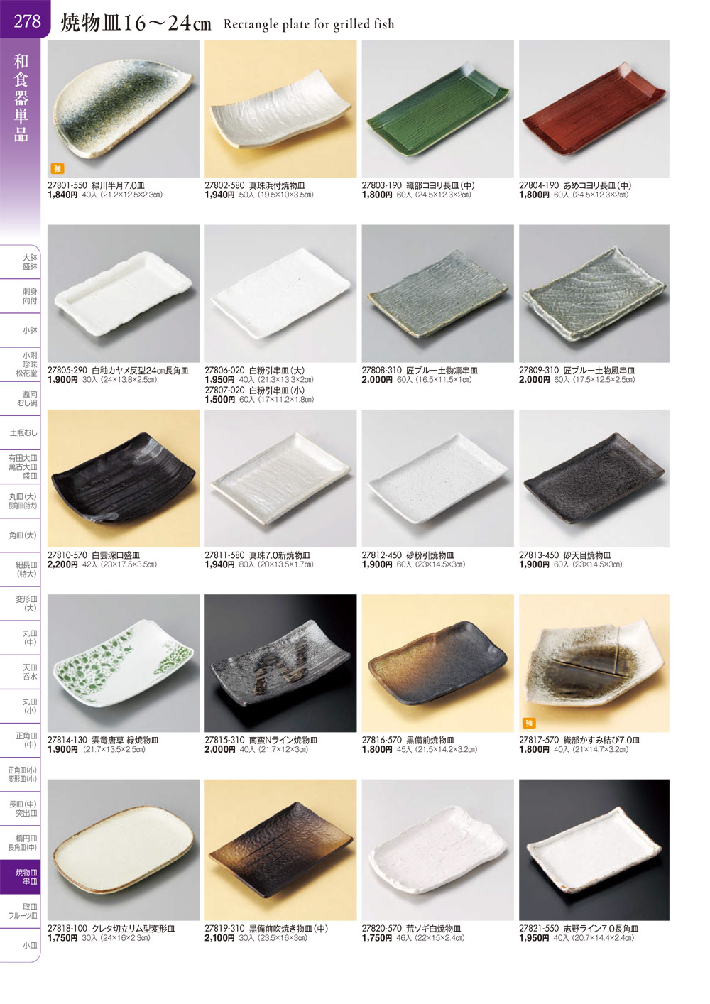 長角皿(中)・焼物皿・半月皿・串皿・のり皿
