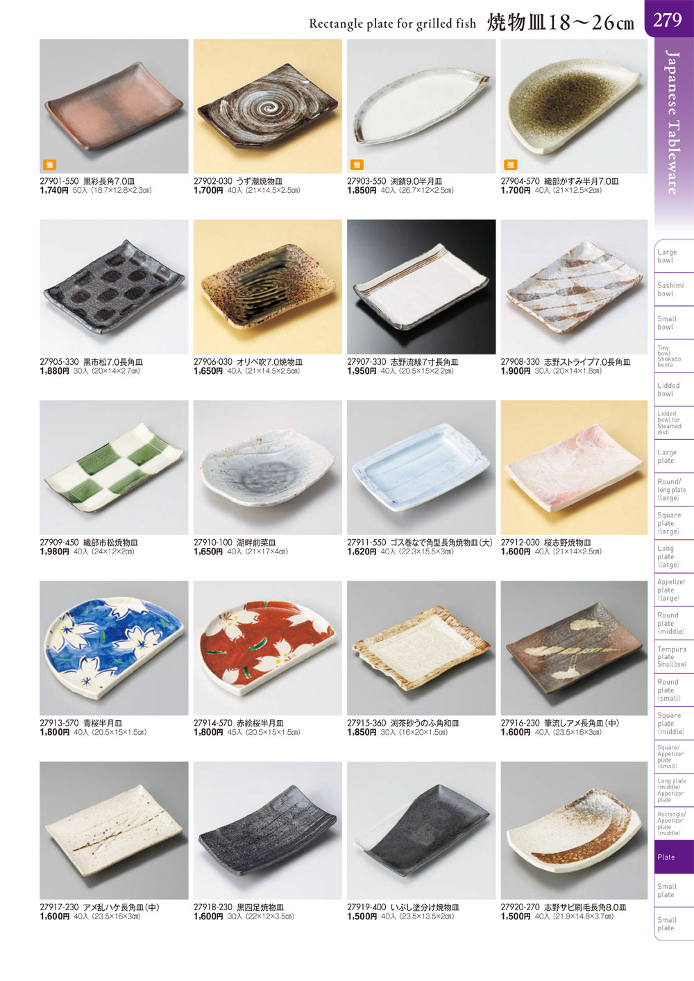 長角皿(中)・焼物皿・半月皿・串皿・のり皿