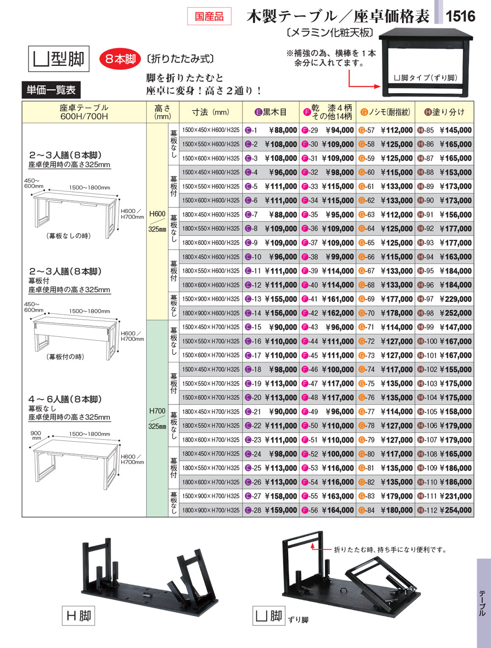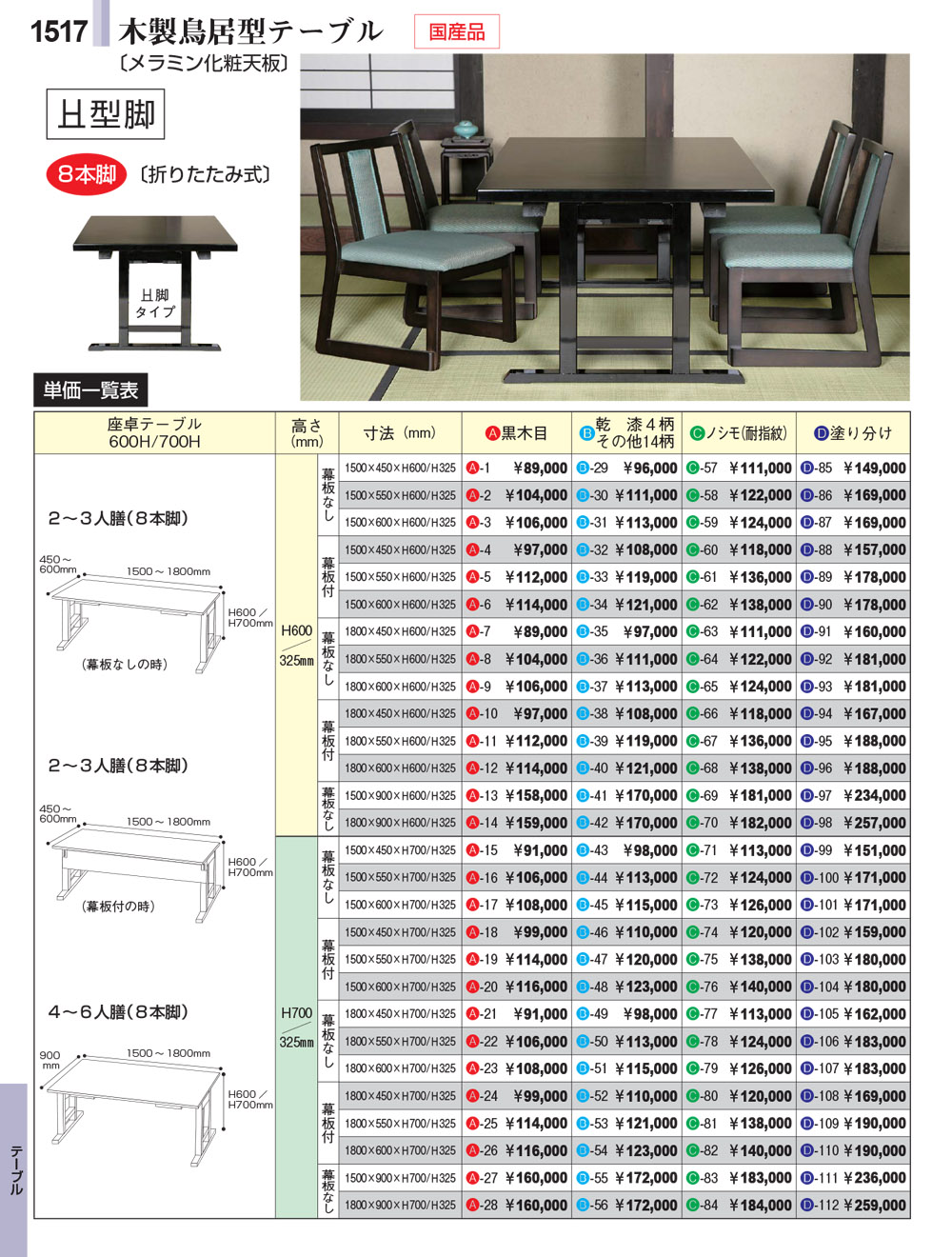テーブル・椅子・お膳・座布団
